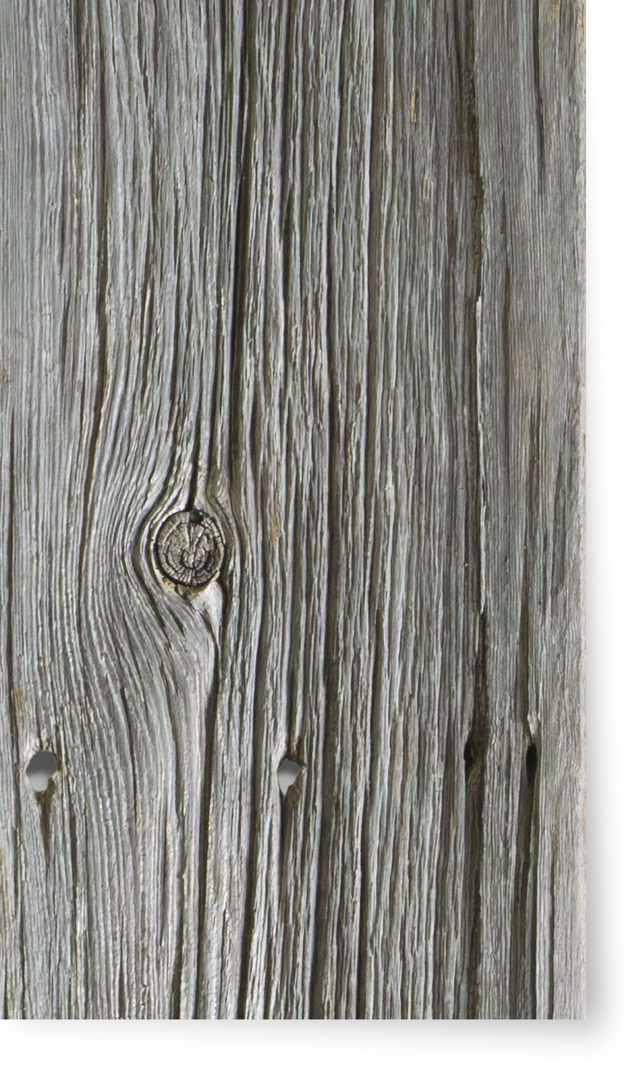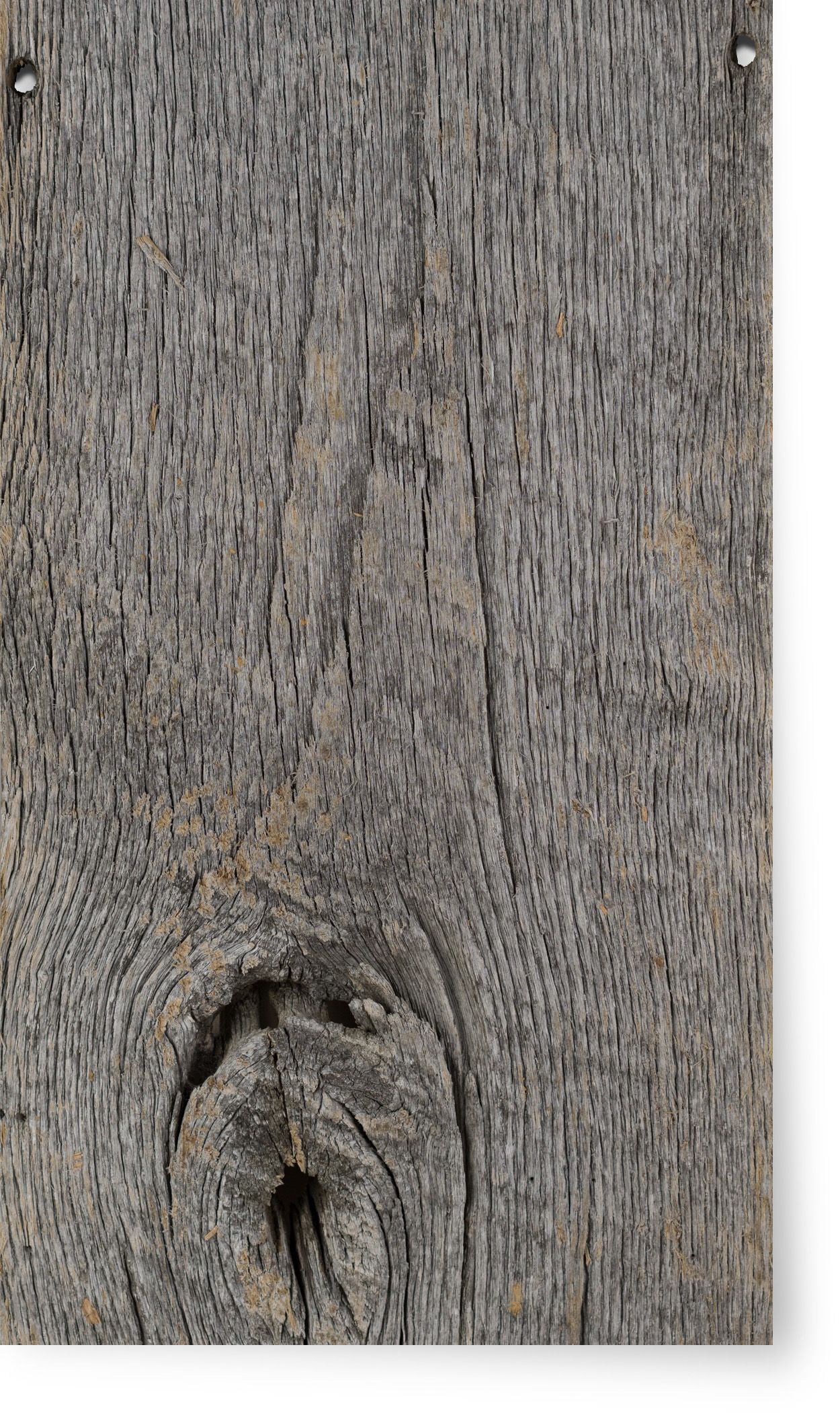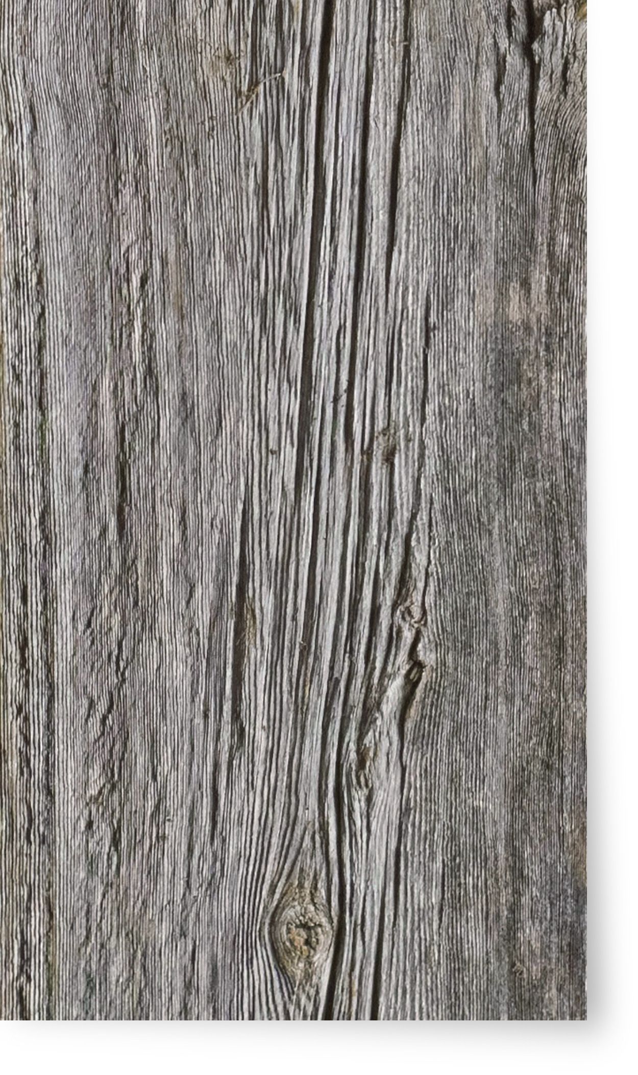 A mix of hard and softwoods that was used for exterior Barn sidings. Weathered through decades of exposure to rain, snow and sun, the wood has become groovy with colour variation between silvergrey and anthracite grey.