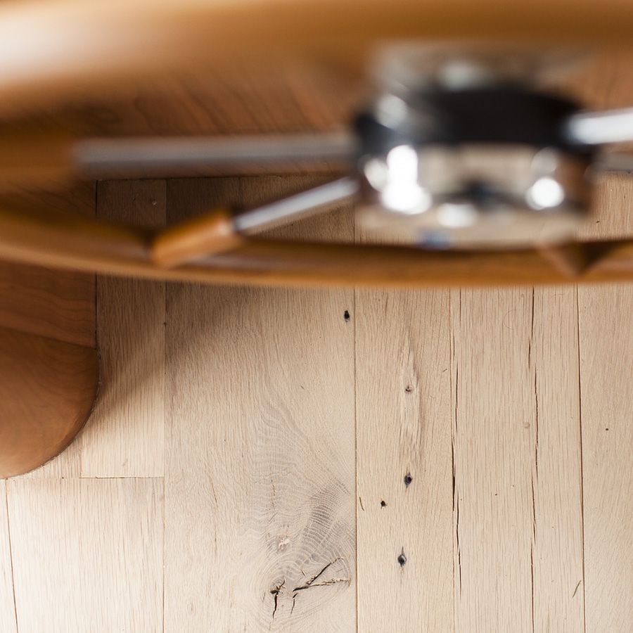 Floor:Antique American White Oak, finished in Faded Ultramatt Poly, with random narrow widths of 10–18 cm.
